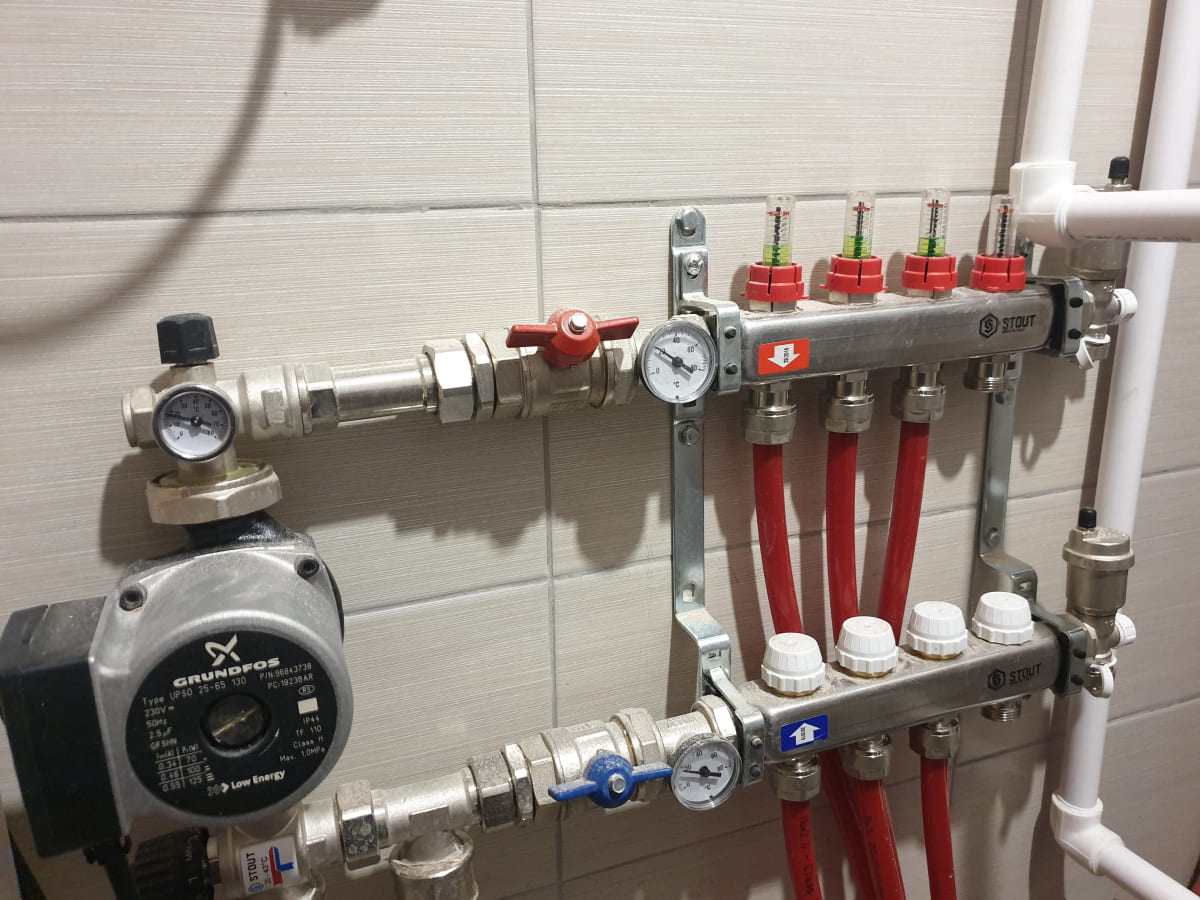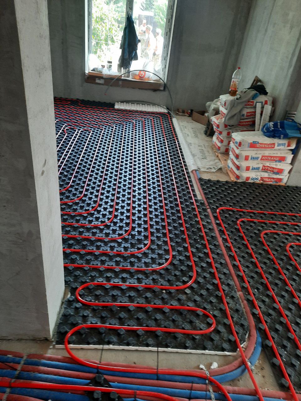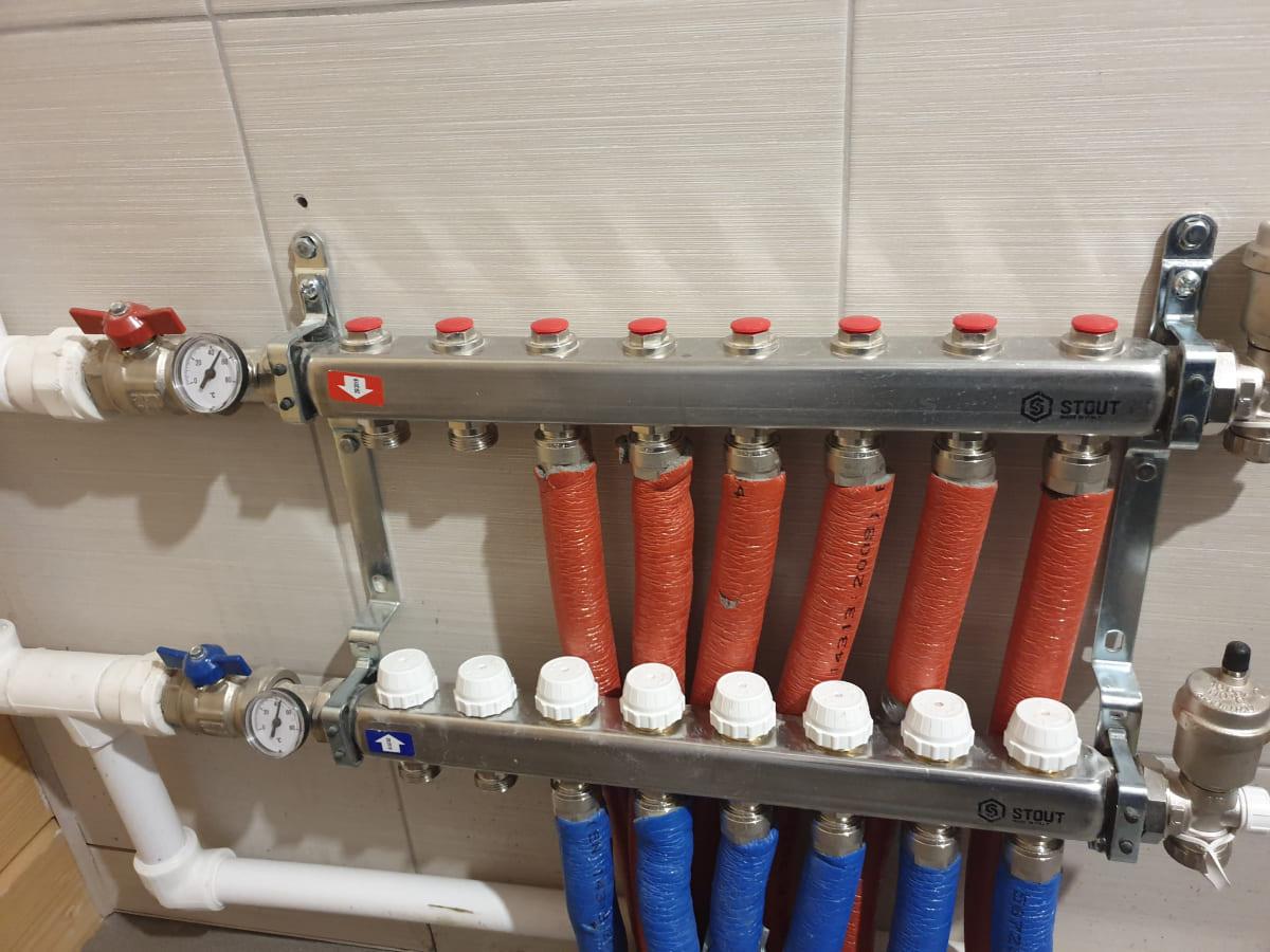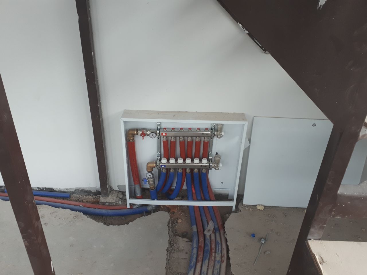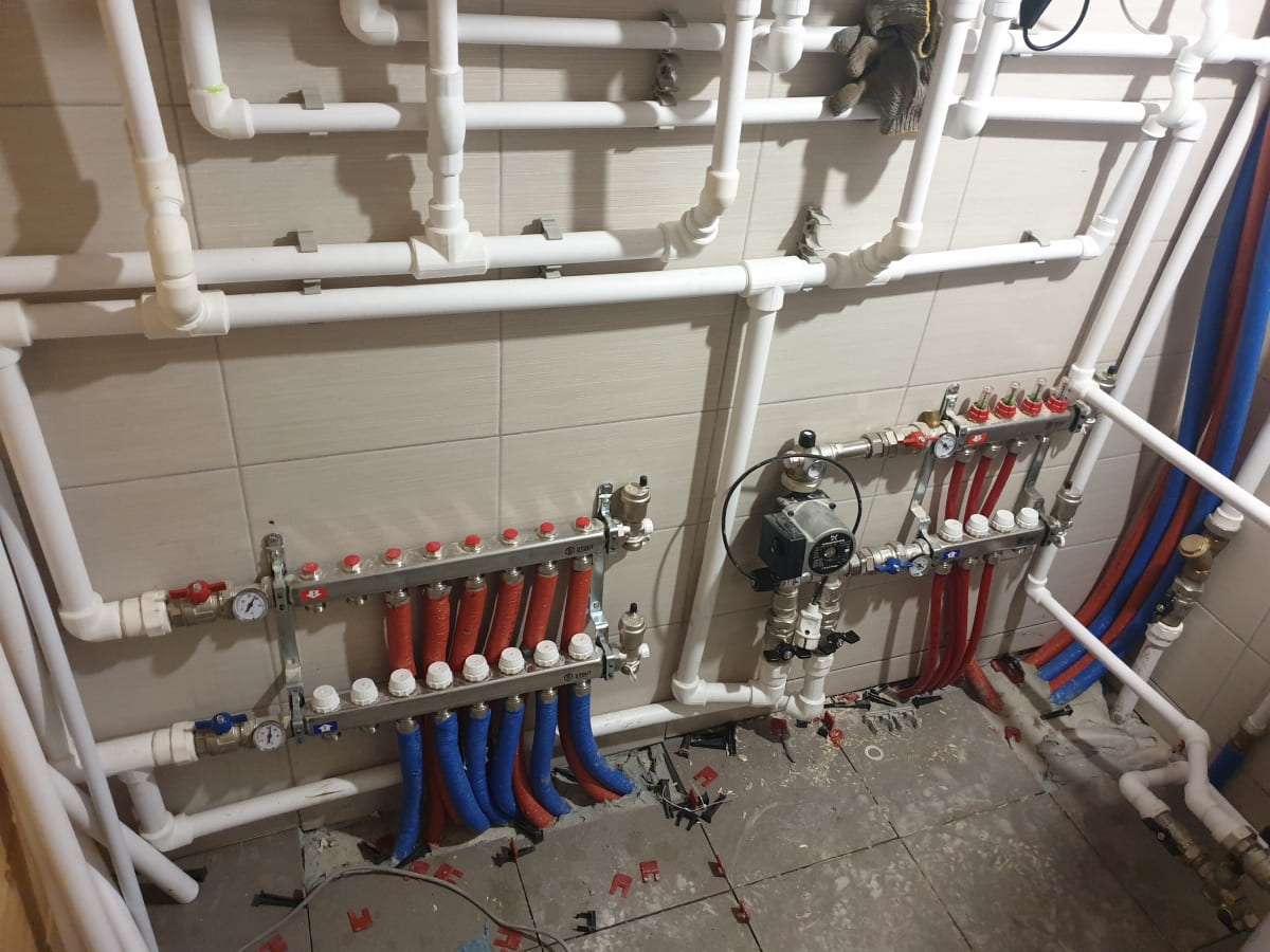 Выполнили монтаж систем водоснабжения, канализации и тёплого пола в одноэтажном доме 225 м²