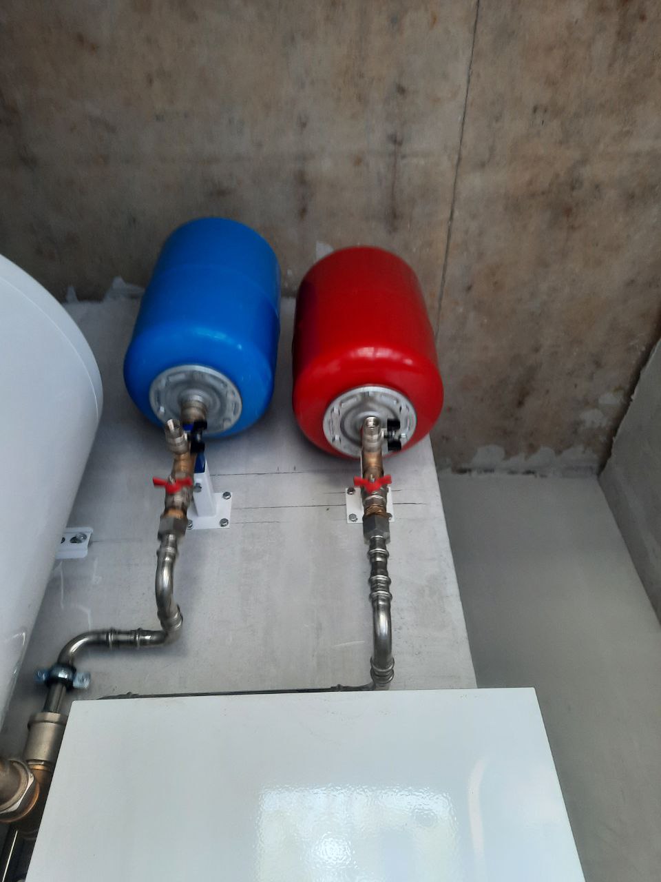 Бойлер косвенного нагрева 200 л с рециркуляцией, гидроаккумулятор 100 л, реле насоса, фильтр, коллекторная схема с индивидуальной подводкой.