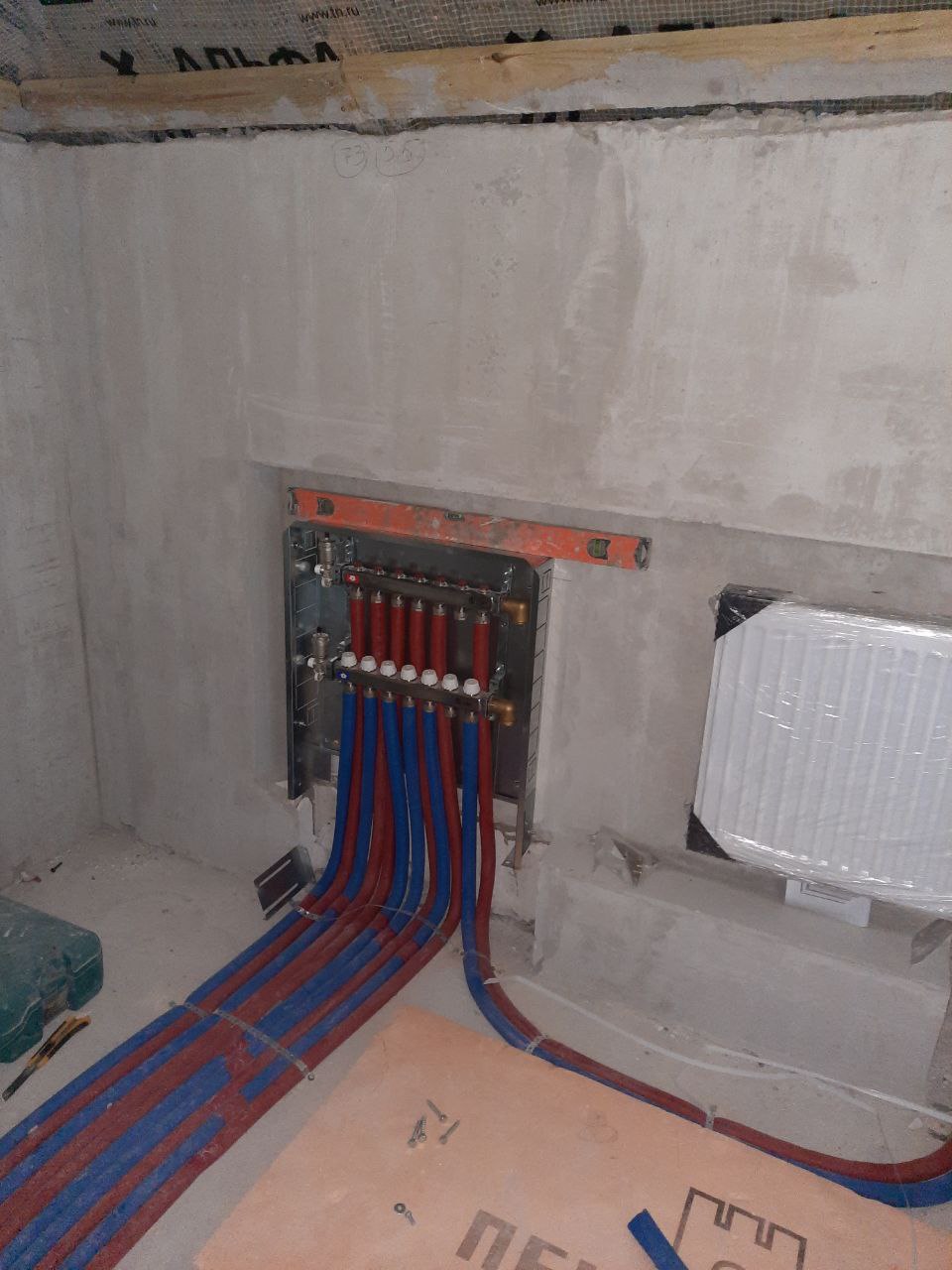 Реализованы коллекторные схемы для радиаторов, теплого пола и водоснабжения. Срок выполнения — 11 дней.
