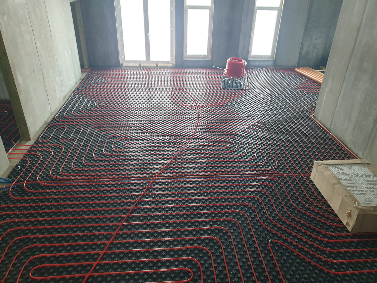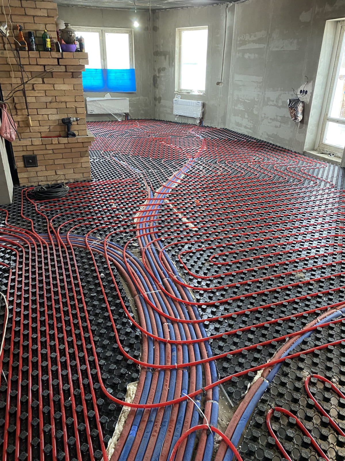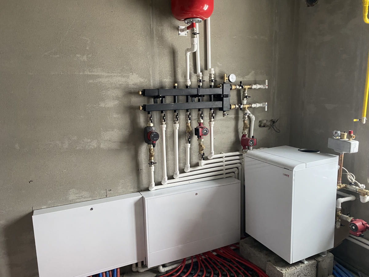 Выполнили монтаж котельной, радиаторов и системы теплого пола по всему дому